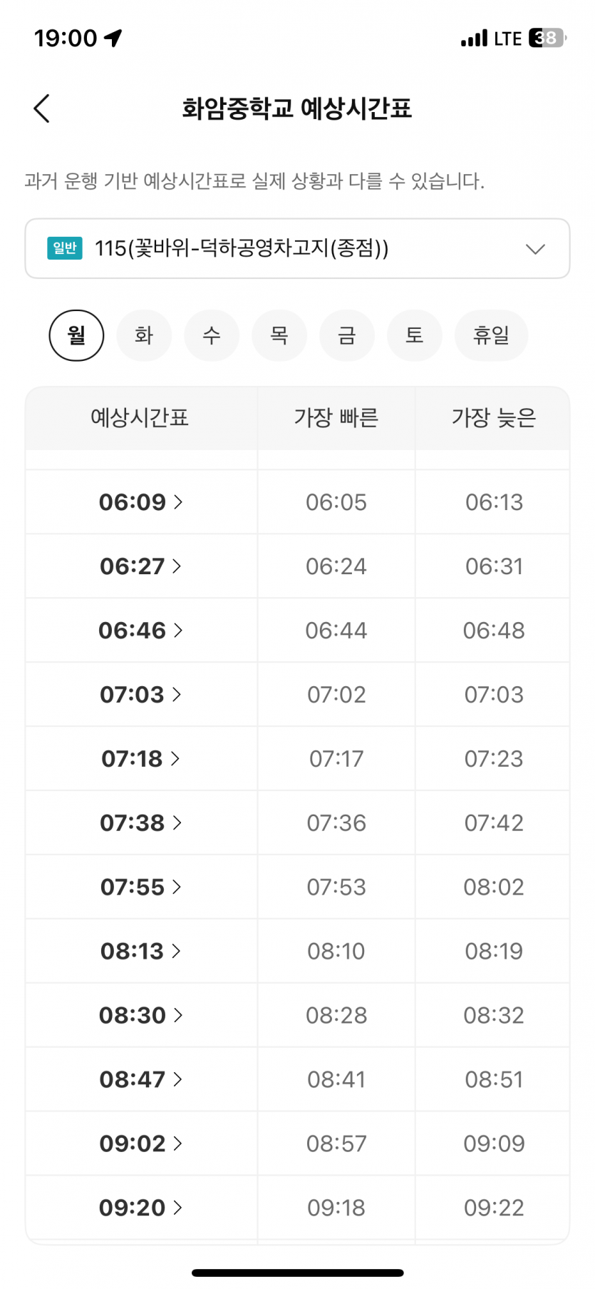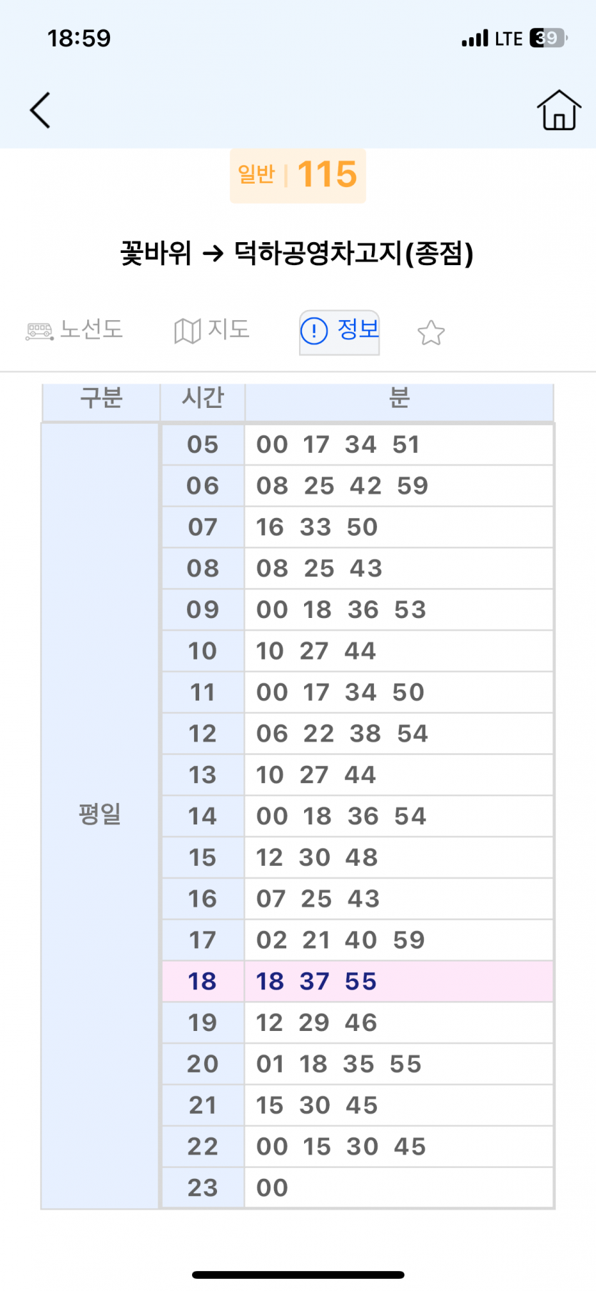 오늘 공휴일 기준 18:34 출발인데 18:33 되자마자 지도앱에 뜬건 이미 종점에서 나온 모습이고 34분 원래 출발해야할 시간엔 화암중 정류장이었습니다.