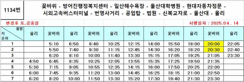 12/25 1134 꽃바위 10:25 출발이오니 자세한 사항은 첨부해드린 시간표를 참고하시기 바랍니다.