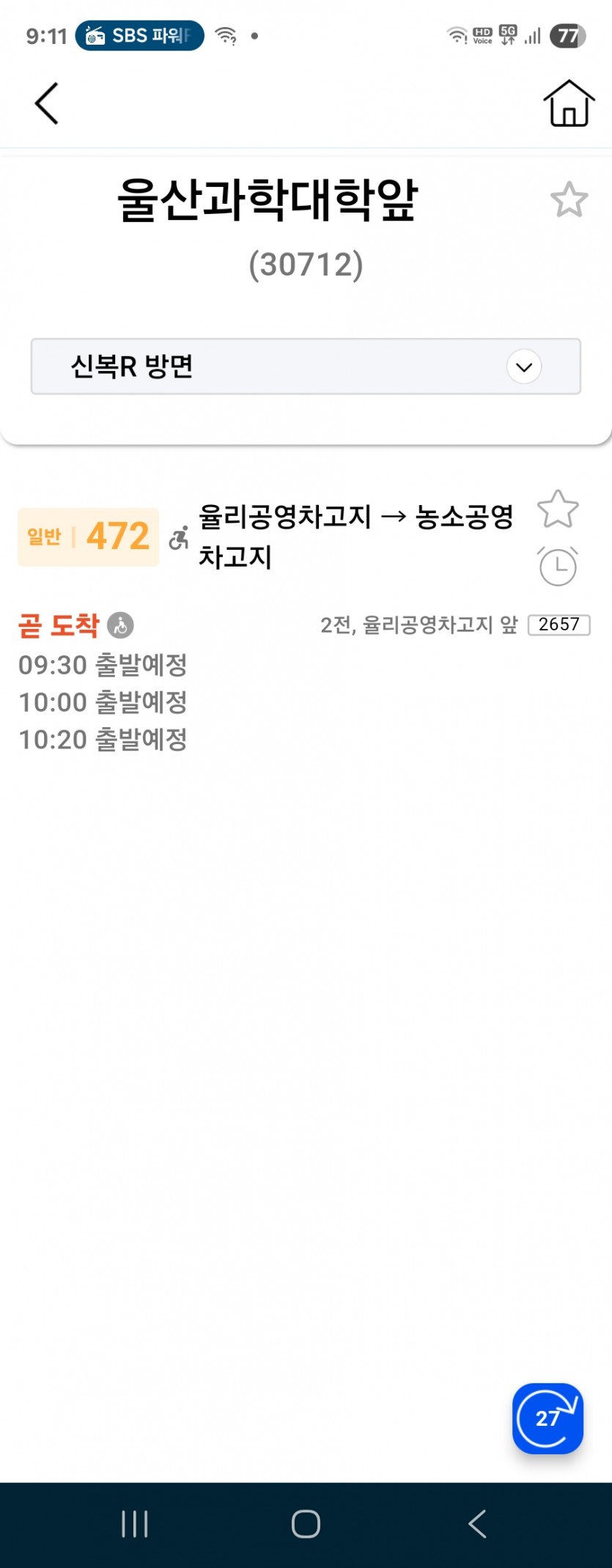 오늘 9월 29일 율리차고지 9시차가 10분이 넘도록 출발했다는데 안오네요