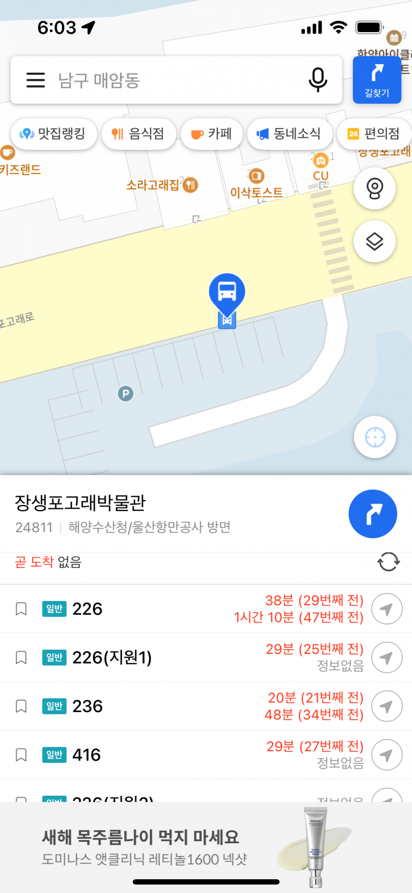 지금은 전부! 2-30분 만에 온다고 뜨고, 236번 저거 20분 남았다고 하는거는 장생포 회차지에 아직 도착도 안했구요.