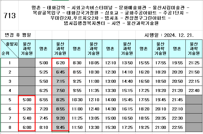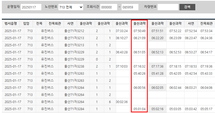 울산과학기술원에서 출발하는 시간표와 운행기록을 첨부해 드리오니 참고하시기 바랍니다.