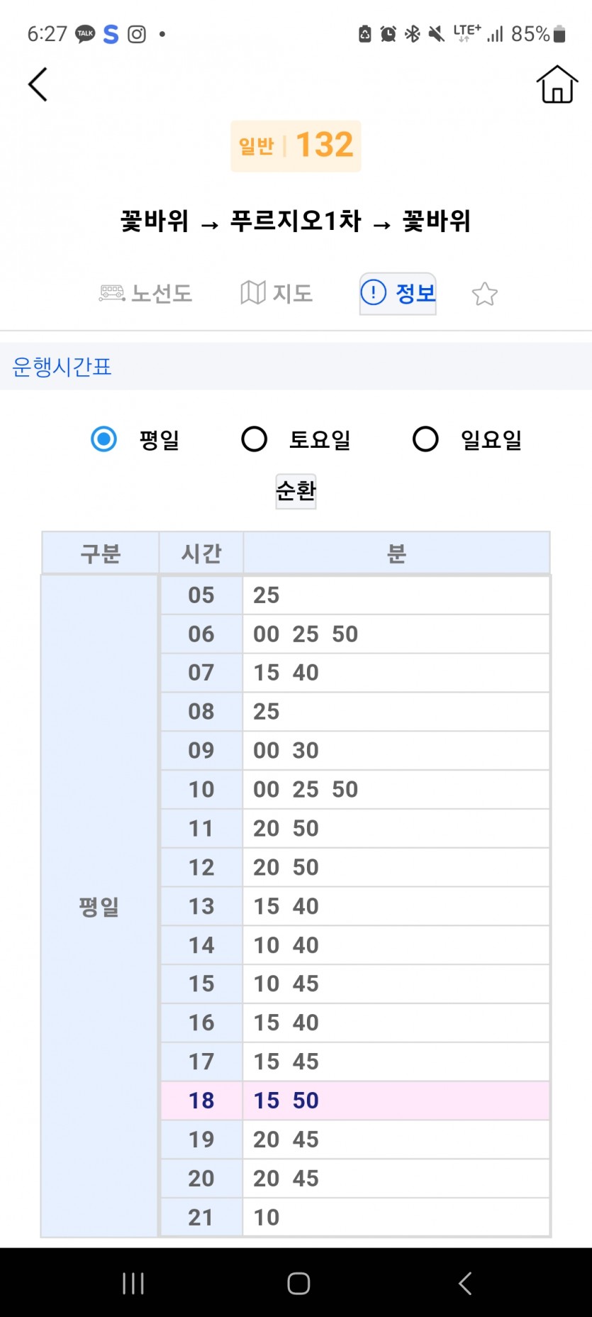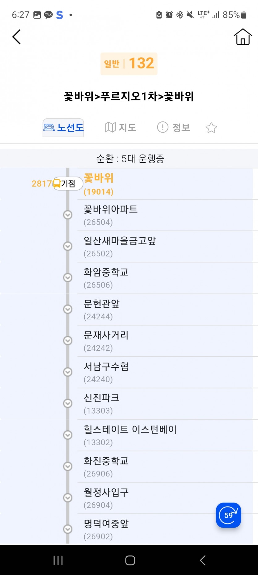 불편 132번 꽃바위 발 18시 15분 미출발