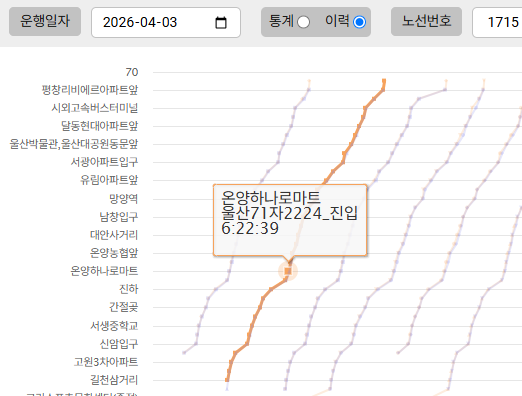 다른 날짜의 운행기록을 확인해 보았을때도 비슷하게 지나간 것으로 확인됩니다.