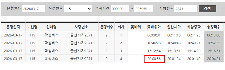 우선 운행기록을 확인해 본 결과, 1분 미만의 시간으로 조금 일찍 출발한 것을 확인하였습니다.