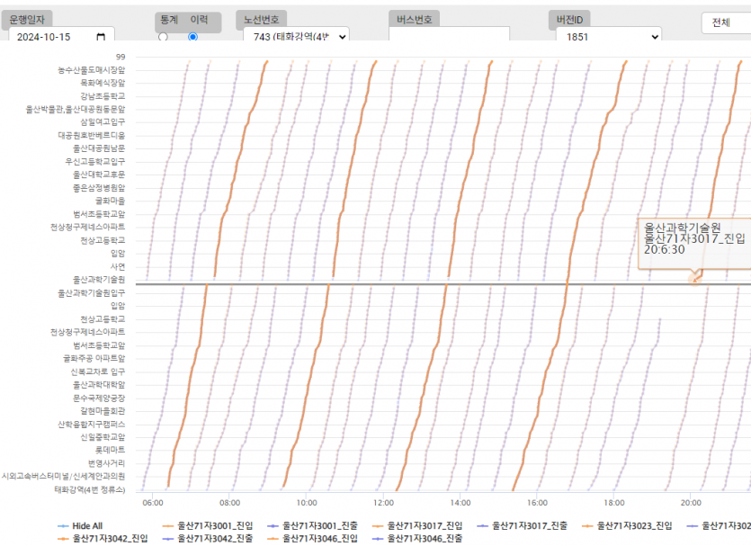 해당 회차만 문제가 있었던 운행기록을 첨부드리오니 참고하시기 바라며, 울산 시내버스와 관련여 다른 문의사항이 있으시면 울산버스운송조합 ☎223-9561 으로 연락주시기 바랍니다.