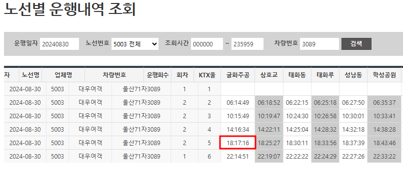 불편 Re: 금일 6시 10분 울산역 출발 5003 번 버스가 오지 않았습니다