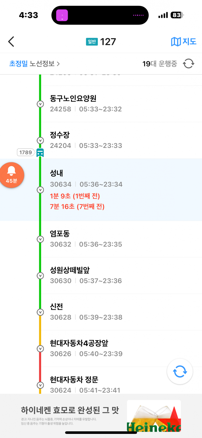 2024.7.19 오후 4:33 분경 127번(차량넘버1789) 승객 태우지 않고 지나침