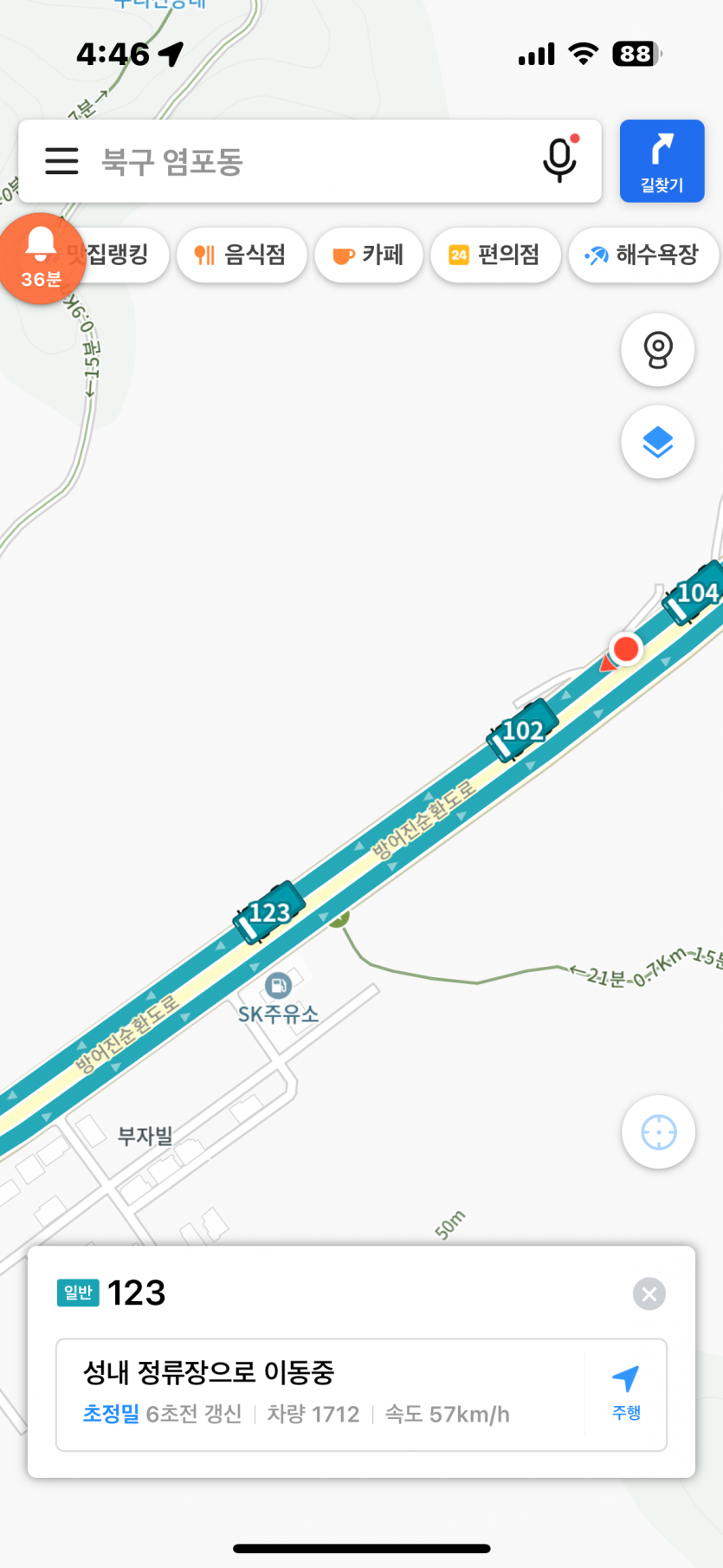2024.8.19 오후 4:46분경 123번(차량넘버1712) 승객 태우지 않고 지나침, 같은시간 127번(차량넘버1732) 지나치려다 급정거해 정류장 한참 지나쳐 정차함