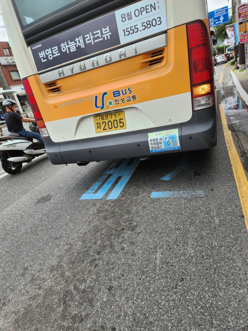 표제의 건과 같이 금일(7/16,화) 남목1동 정차한 차량번호 울산71자 2005번 버스 신고합니다.