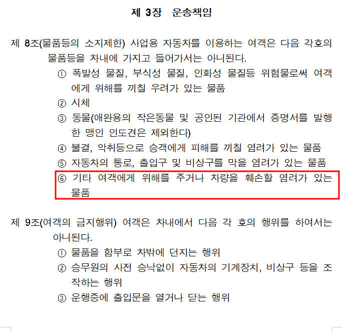 승무사원의 판단으로 거부가 가능한 부분이 명시되어 있기 때문에 탑승이 가능한 승무사원도 있고 탑승을 시켜주지 않는 승무사원도 있습니다.