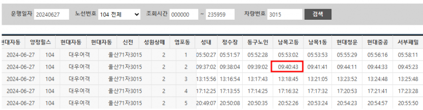 - 다음글24/06/27 농소차고지 06:25 출발 205번(지원1) 24.06.27