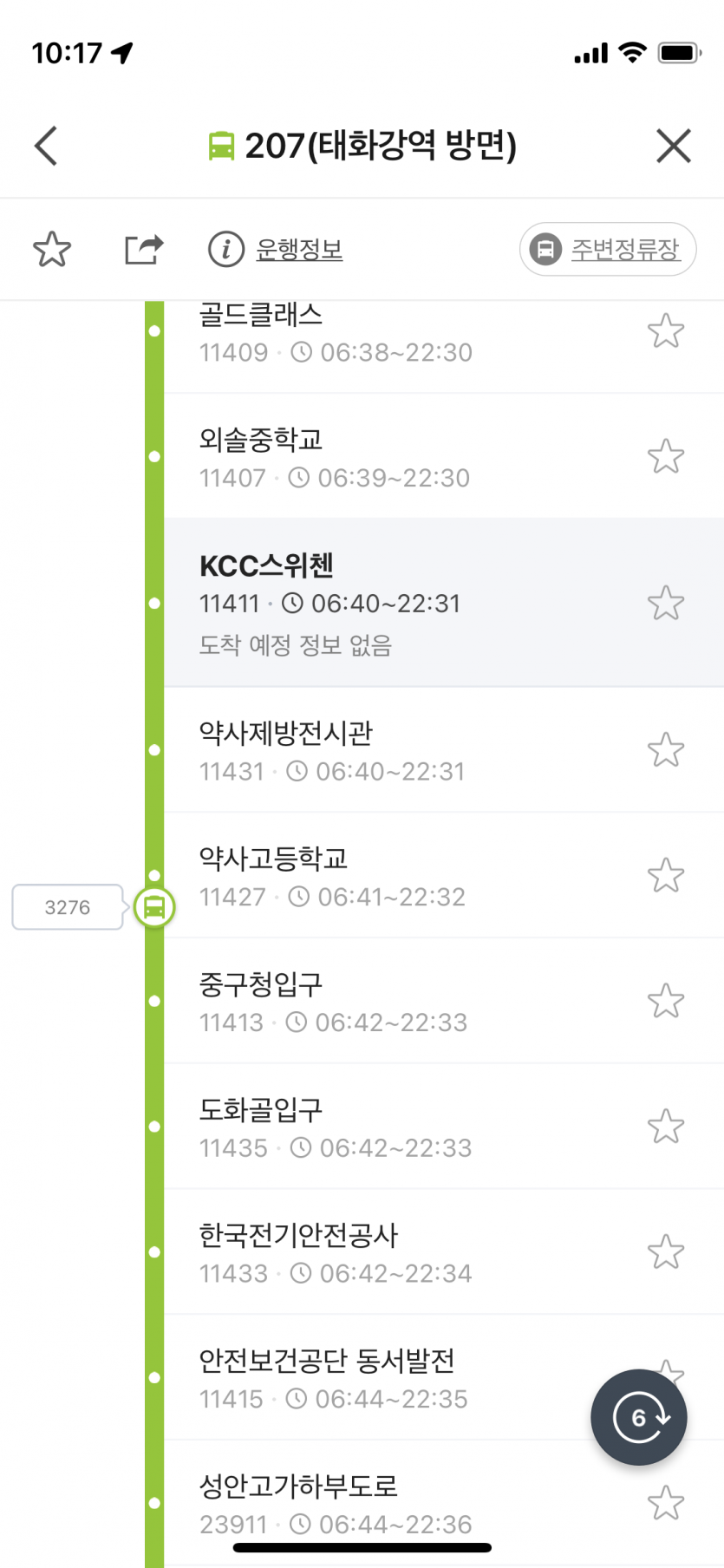 오늘 오전 북구에서 kcc로 지나가는 207번버스