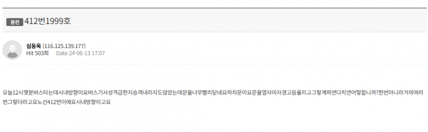 - 다음글버스 이용시 불편사항 24.06.17