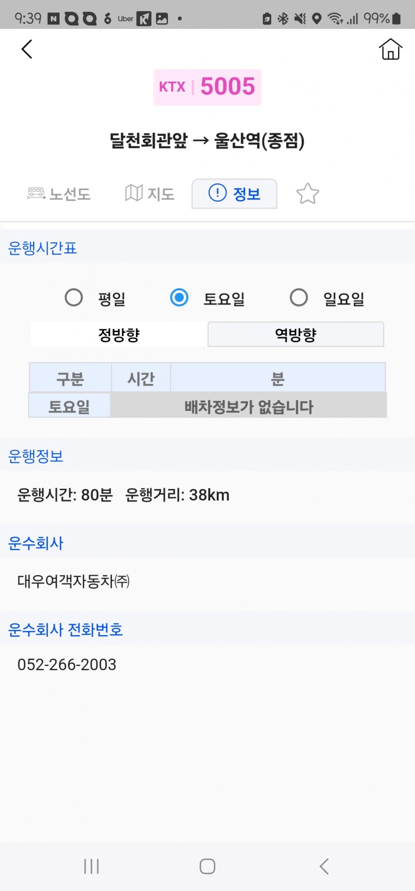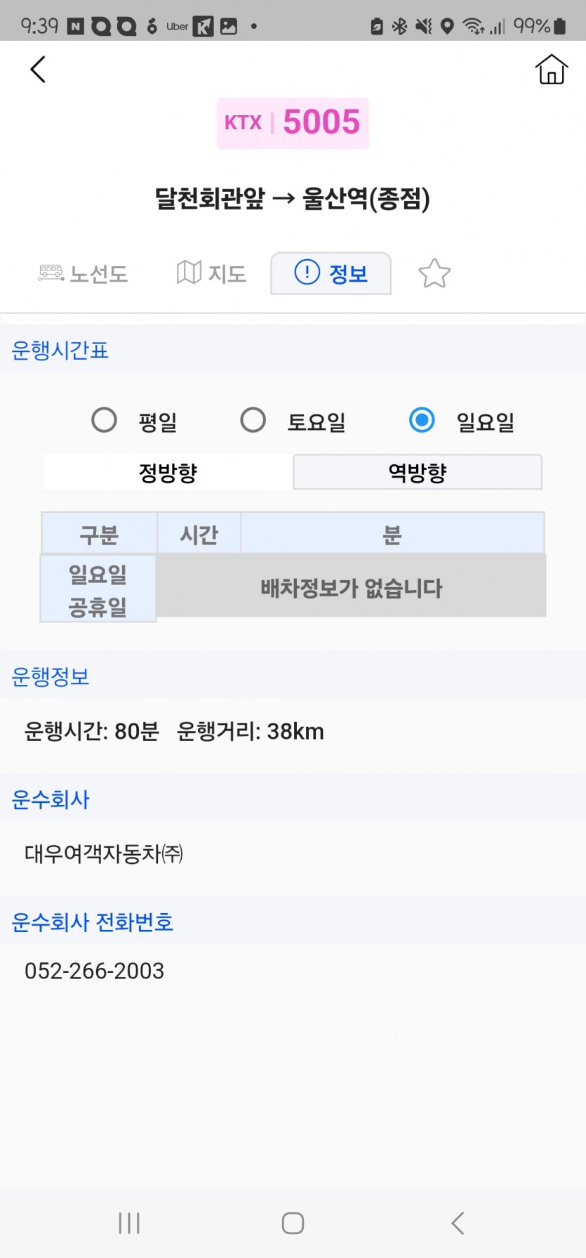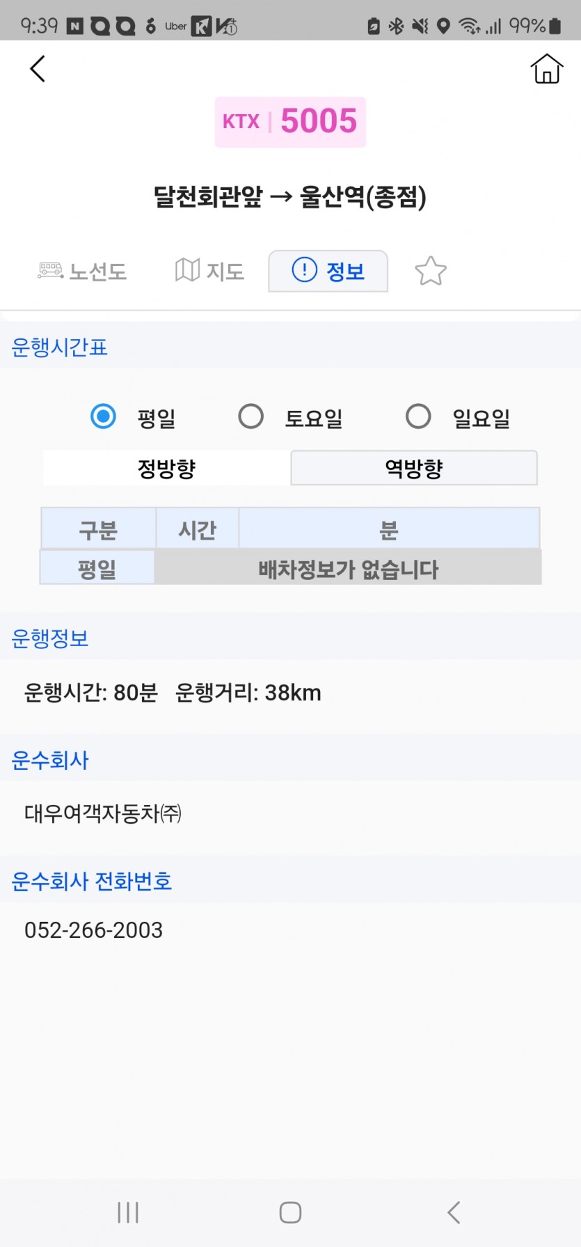 5005 달천에서 울산역 방면 버스시간표가 보이지않습니다 평일, 토,일 시간표좀 올려주세요