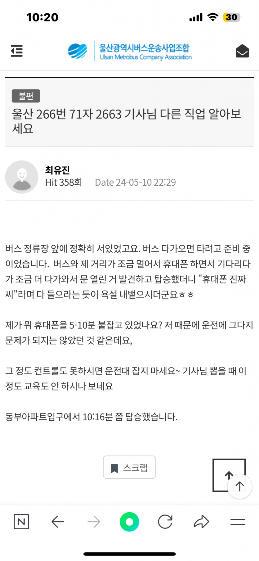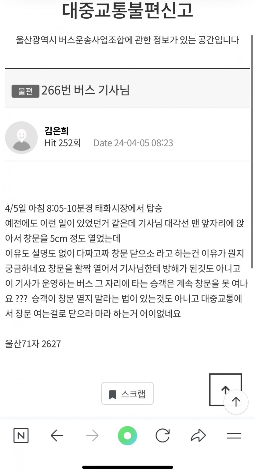 불편 울산여객 266번 72자2637 지속된 불편민원 바뀌지 않는 태도