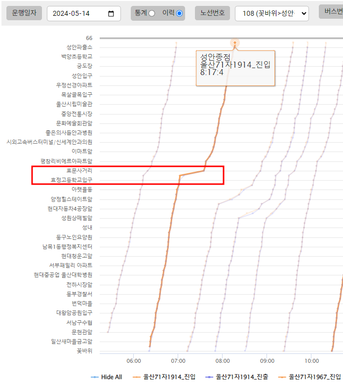 2024-05-14 아침시간대(06:00~) 효문사거리 사고로 인해 효문사거리(동구→남구)를 경유하는 노선들의 운행이 지연되었습니다.
