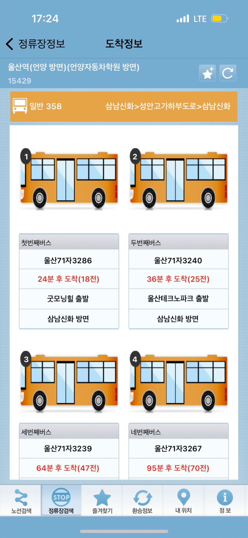 제가 당시 탈 수 있었던 버스는 이 버스 외에도 몇 대 더 있었지만, 이 버스가 10~15분 더 빨리 도착하므로 가장 빨리 울산역에 도착할 것으로 예상했습니다.