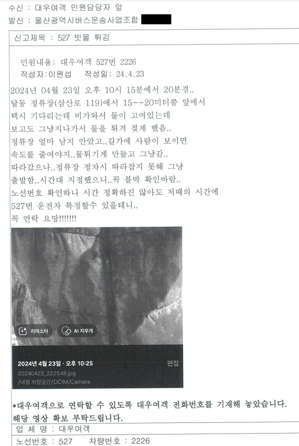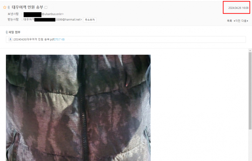 4/26 날짜로 대우여객 이메일로 요청하신 영상 확보는 전달하였으니 참고하시기 바랍니다.