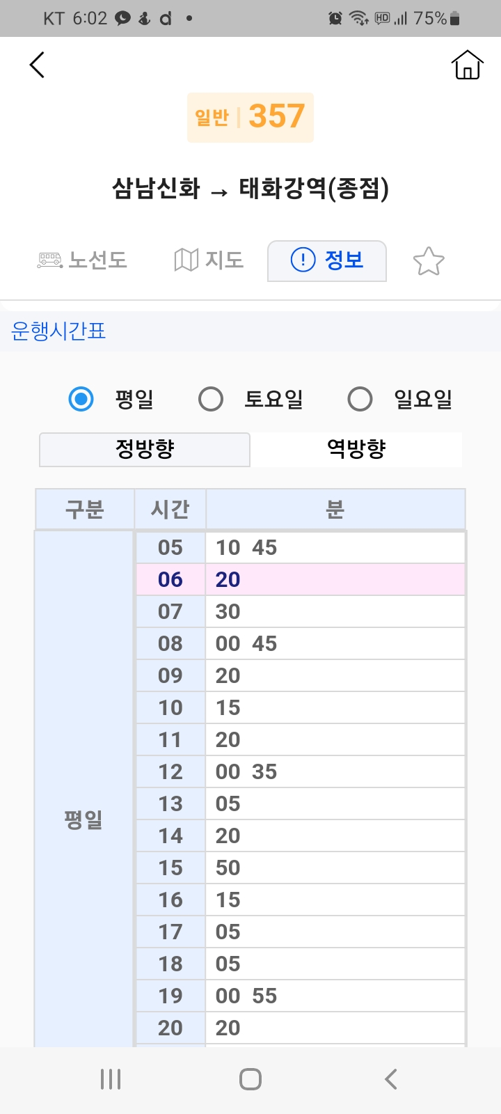 언양 삼남 출발하는 357. 버스 첫차가 몇시인가요???