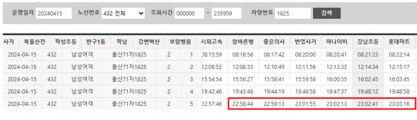 안녕하세요. 신여운님. 울산버스운송사업조합 고객의견 게시판 담당자입니다.
