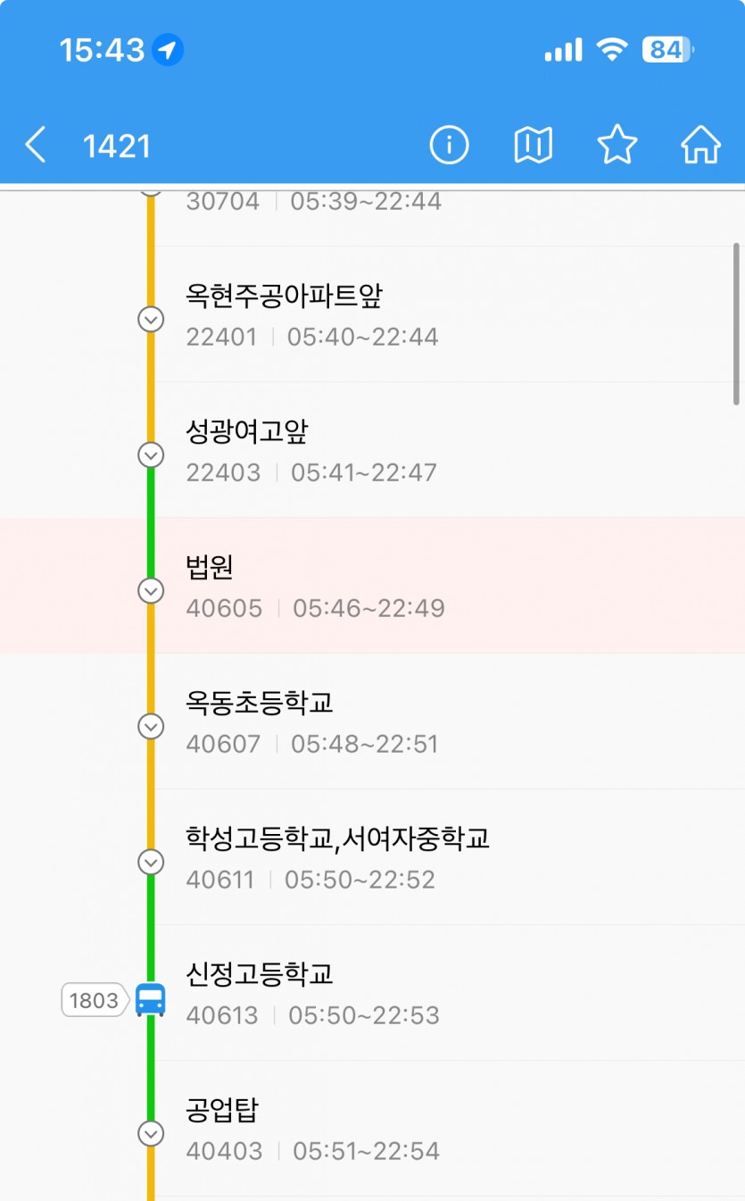 4월 14일, 율리-> 꽃바위 방면, 법원 정류장, 15:40분 경,1421번 1803 버스 기사님