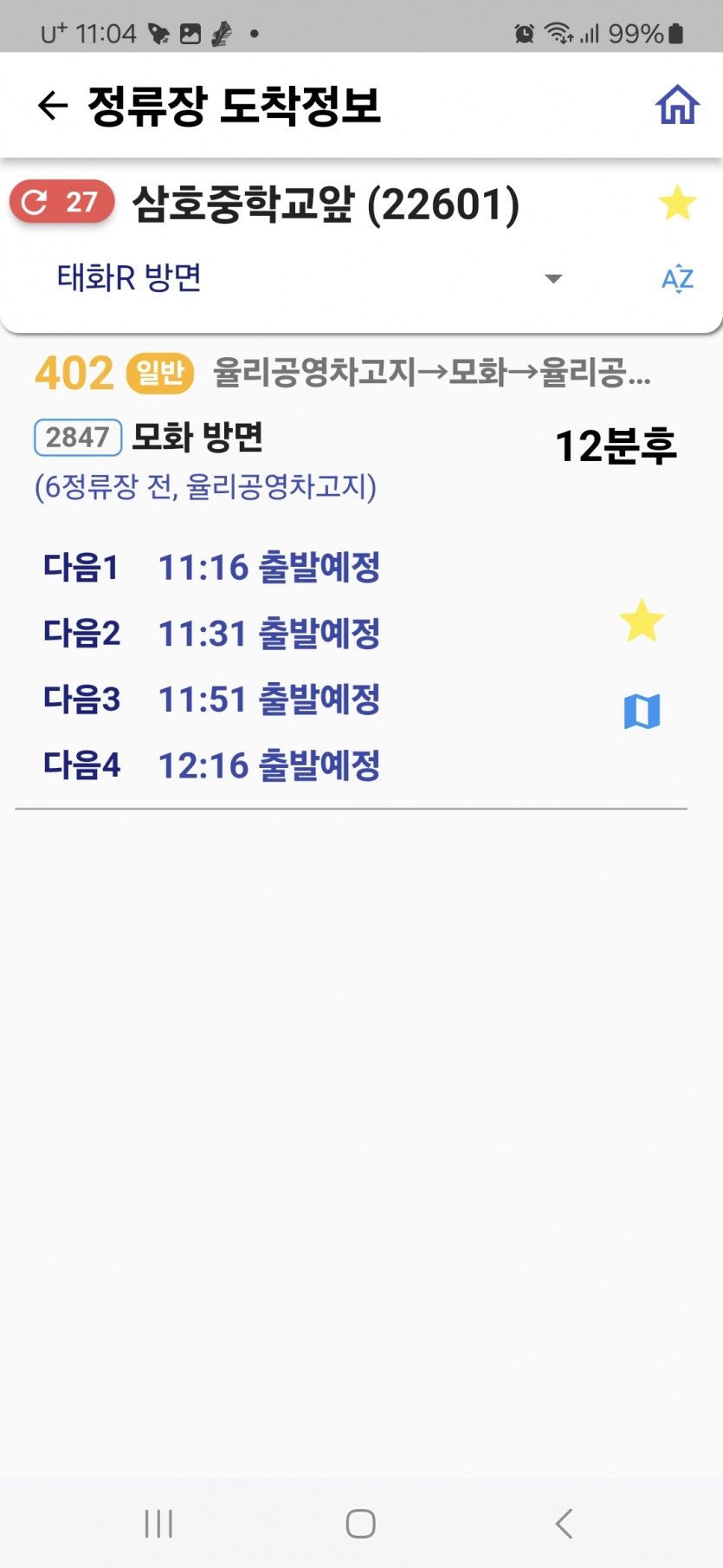 402번 버스기사님 왜안오나요 버스시간이 10시46분출발인데 11시6분인데 버스시간이 갑자기 늘어났네요? 불편하네요 비와서 그런건 이해하는데 버스시간을....