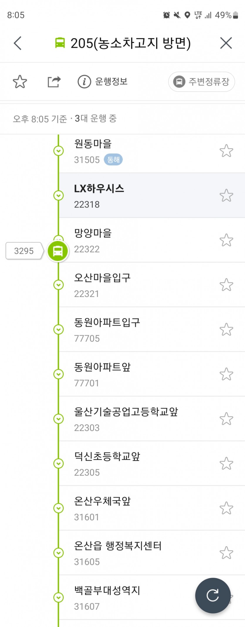 205번 3295번 농소차고지방면 lx하우시스 정거장