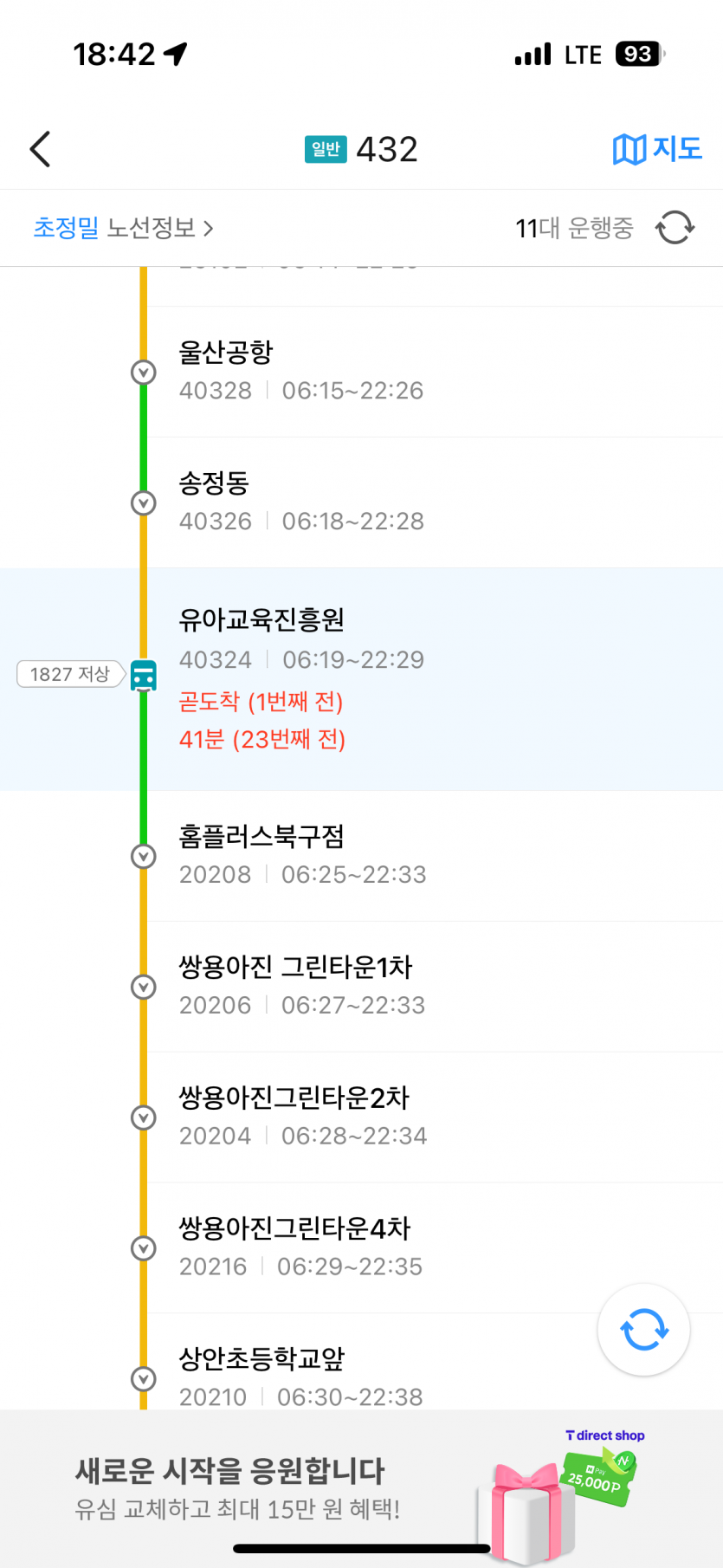 18:38 경 / 화봉시장 -> 화봉중학교 -> 울산공항 방면으로 가는 432번 저상버스