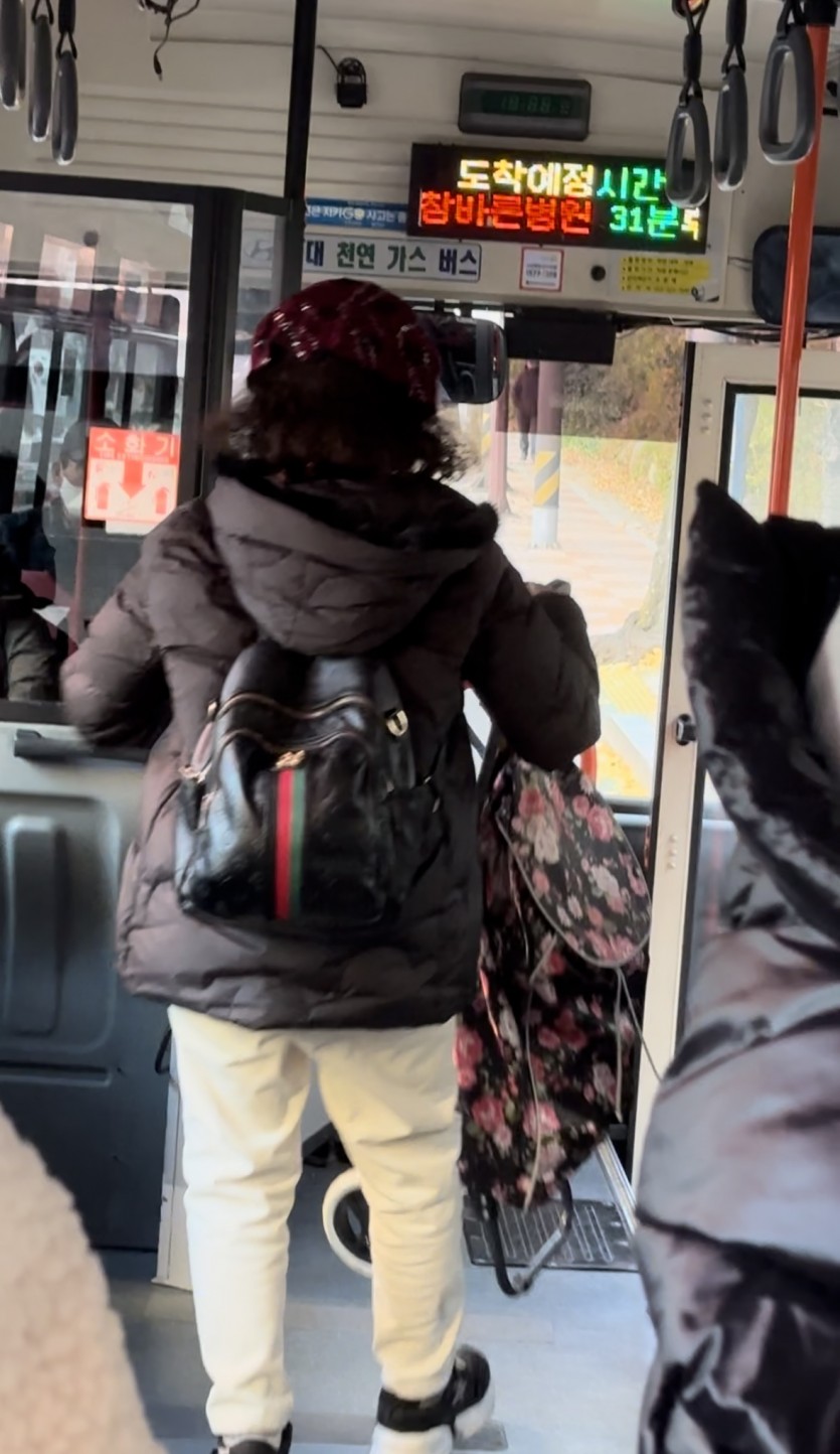 출발을 하지 않으니 다른 승객들이 불만을 표출하셔서 버스 기사님 은 그냥 출발하려고 하시더니 오늘은 태워줄테니 담부터 타지마세 요 라고 말씀하시며 "얼굴 기억하도록 사진 좀 찍게 앞으로 와보세 요"라는 말씀을 계속 하셨네요.