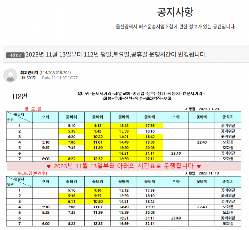 불편 Re: 112번 시간표 변경된 날짜 요청건