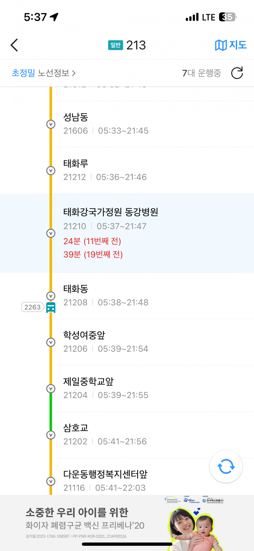 2025.10.16(목) 17:36-17:37 동강병원에서 태화동방면으로 지나갔던 213번 차량번호2263 버스기사님