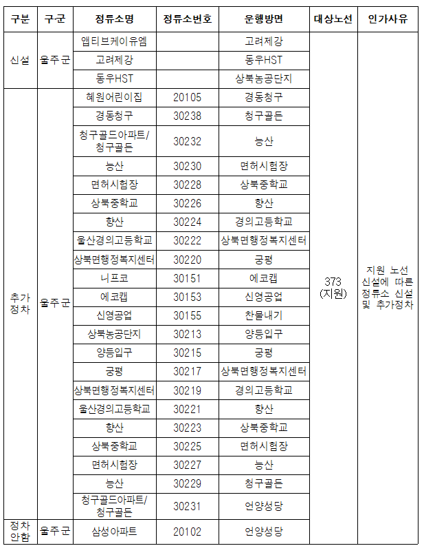 노선변경,신설,폐지 2025년 10월 11일부터 373번 지원 노선 운행 경로가 변경됩니다.