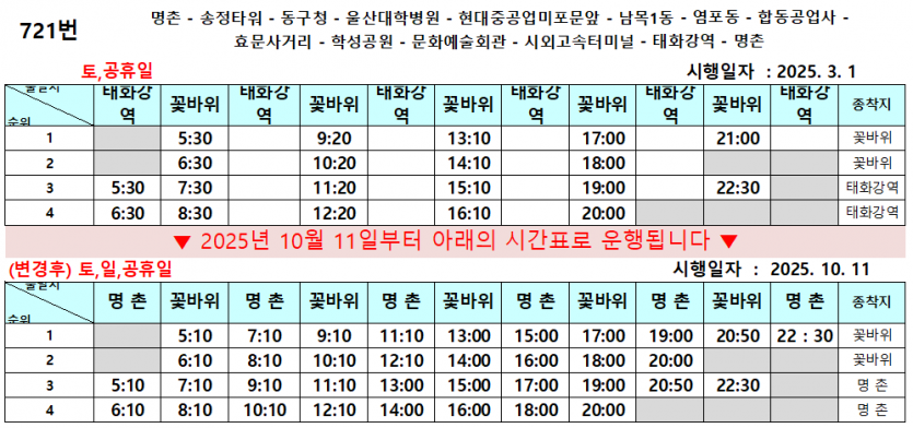 - 이전글2025년 10월 11일부터 남구02번, 남구07번, 북구05번 운행 시간이 변경됩니다. 25.10.02