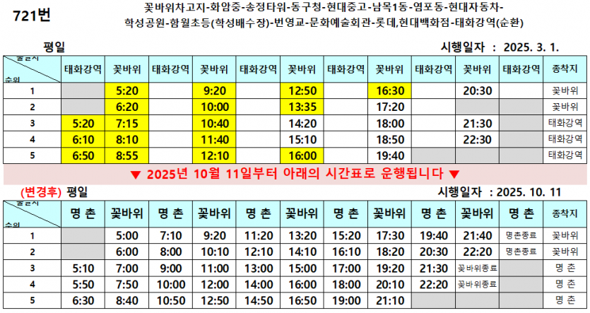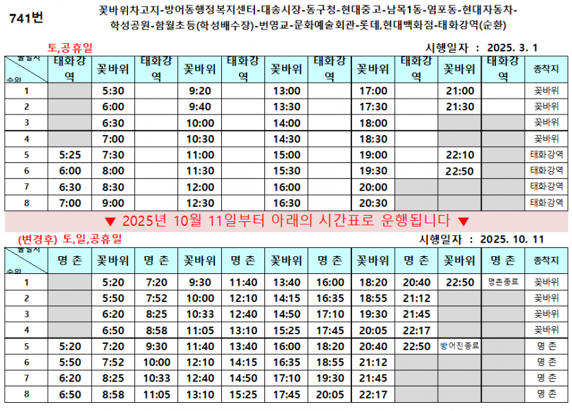 시간변경 2025년 10월 11일부터 373번, 721번, 741번 운행 시간이 변경됩니다.