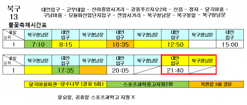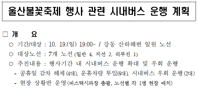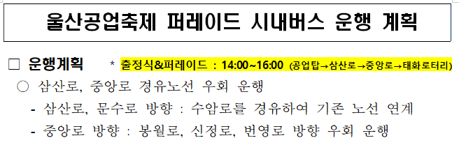 알림 2025년 10월 19일 공업축제 및 불꽃축제로 시내버스가 우회 운행합니다.