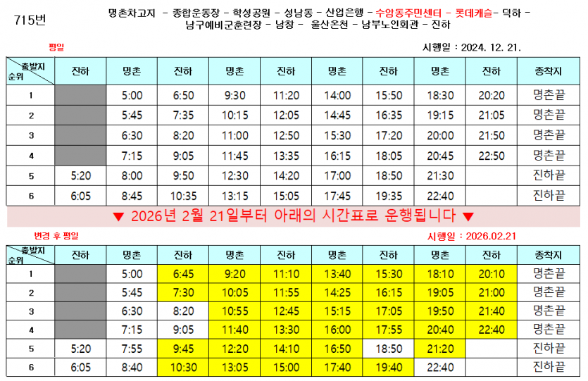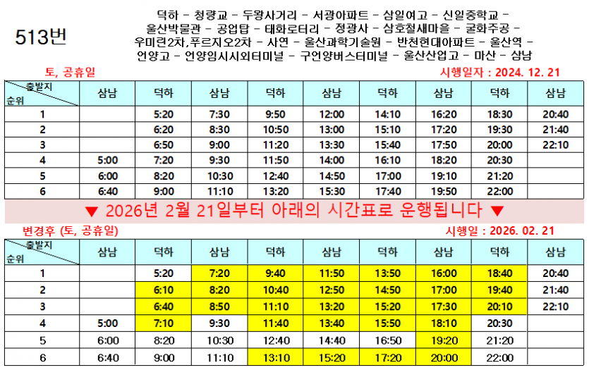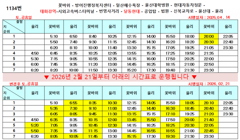 - 다음글2026년 설(명절)연휴기간 울산시내버스 운행 시간을 알려드립니다. 26.02.06