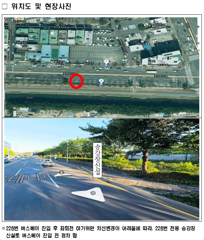 정류소 2026년 2월 28일부터 태화중학교 정류소가 신설됩니다.(226번 전용 정차 정류장) 페이지 정보 작성자 최고관리자 (114.♡.215.204) 조회Hit 213회 작성일Date 26-02-12 10:26 본문 목록 이전글2026년 2월 28일부터 반정삼거리 정류소가 이설됩니다. 26.02.12 다음글2026년 2월 21일부터 124번, 313번, 363번, 513번, 715번, 724번, 1134번 운행 시간이 변경됩니다. 26.02.12